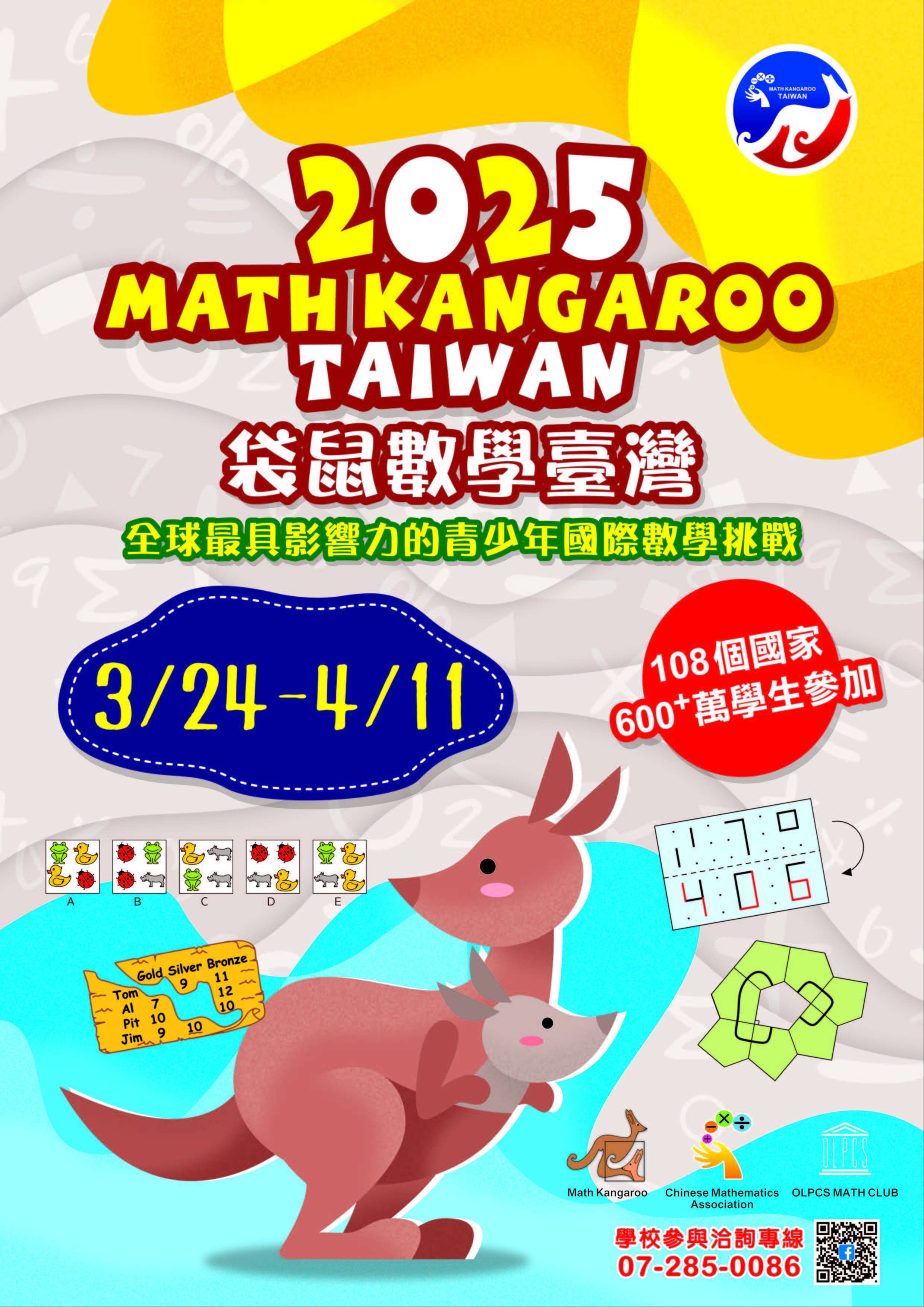 函轉中華數學協會辦理「2025 Math Kangaroo Taiwan 袋 鼠數學比賽」競賽一案,請鼓勵所屬學生參加,請查 照。