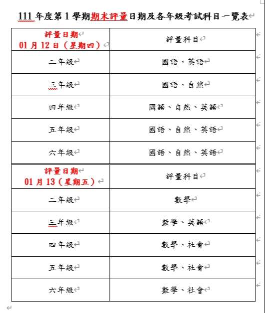 評量日期:112年1月12日(星期四)、1月13日(星期五) 考試科目:請參考附件說明。