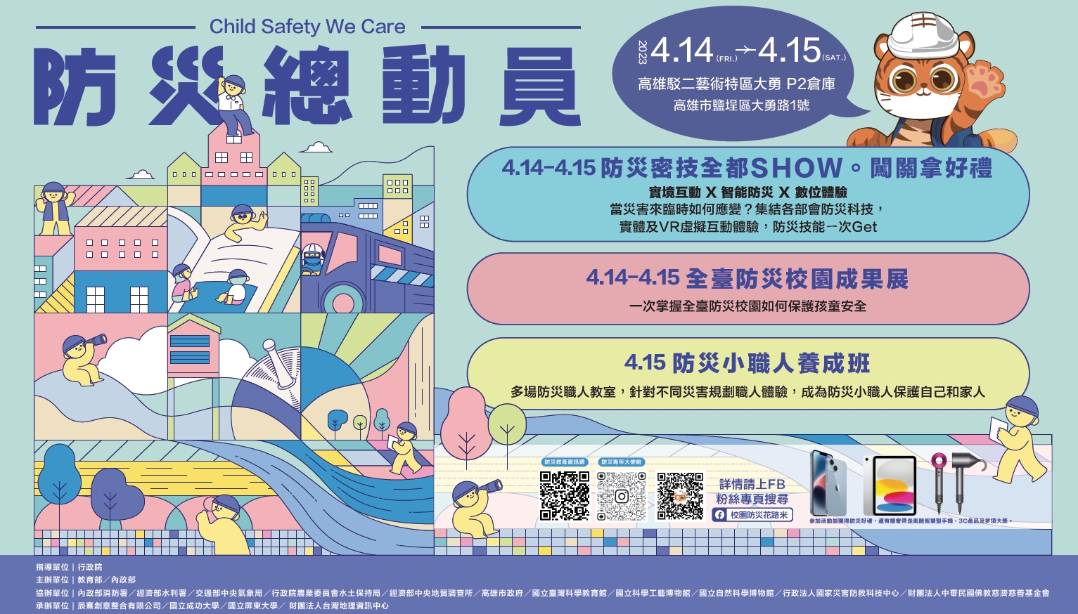四、活動期程為112年4月14日至4月15日假高雄駁二藝術特區 勇區P2倉庫,兩日皆有防災闖關集章活動;4月15日辦理防 災小小職人活動,請貴機關學校(園所)轉知教職員工生 及家長共襄盛舉。