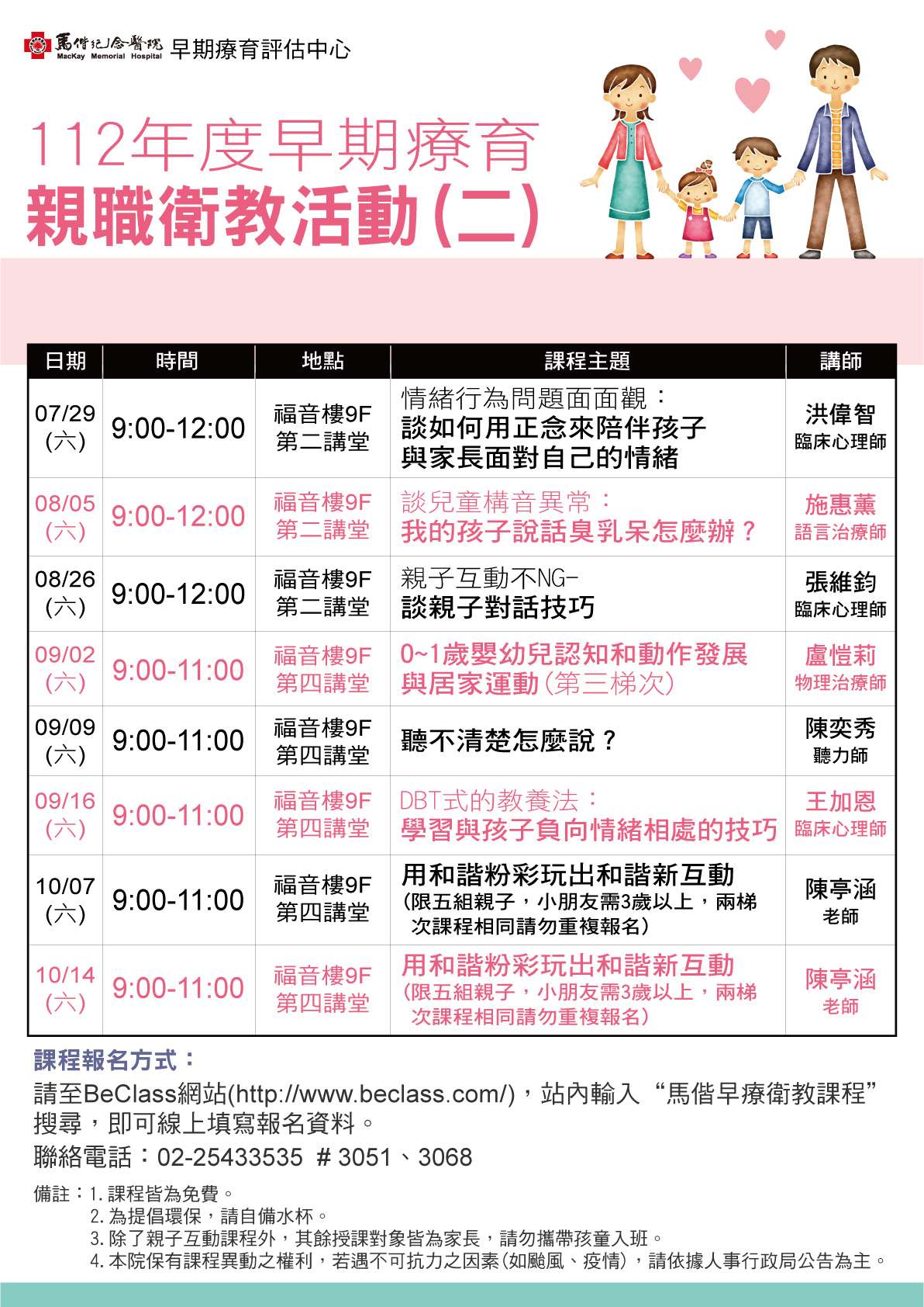 台灣基督長老教會馬偕醫療財團法人馬偕紀念醫院早療中心舉辦「112年度早期療育親職衛教活動(二)
