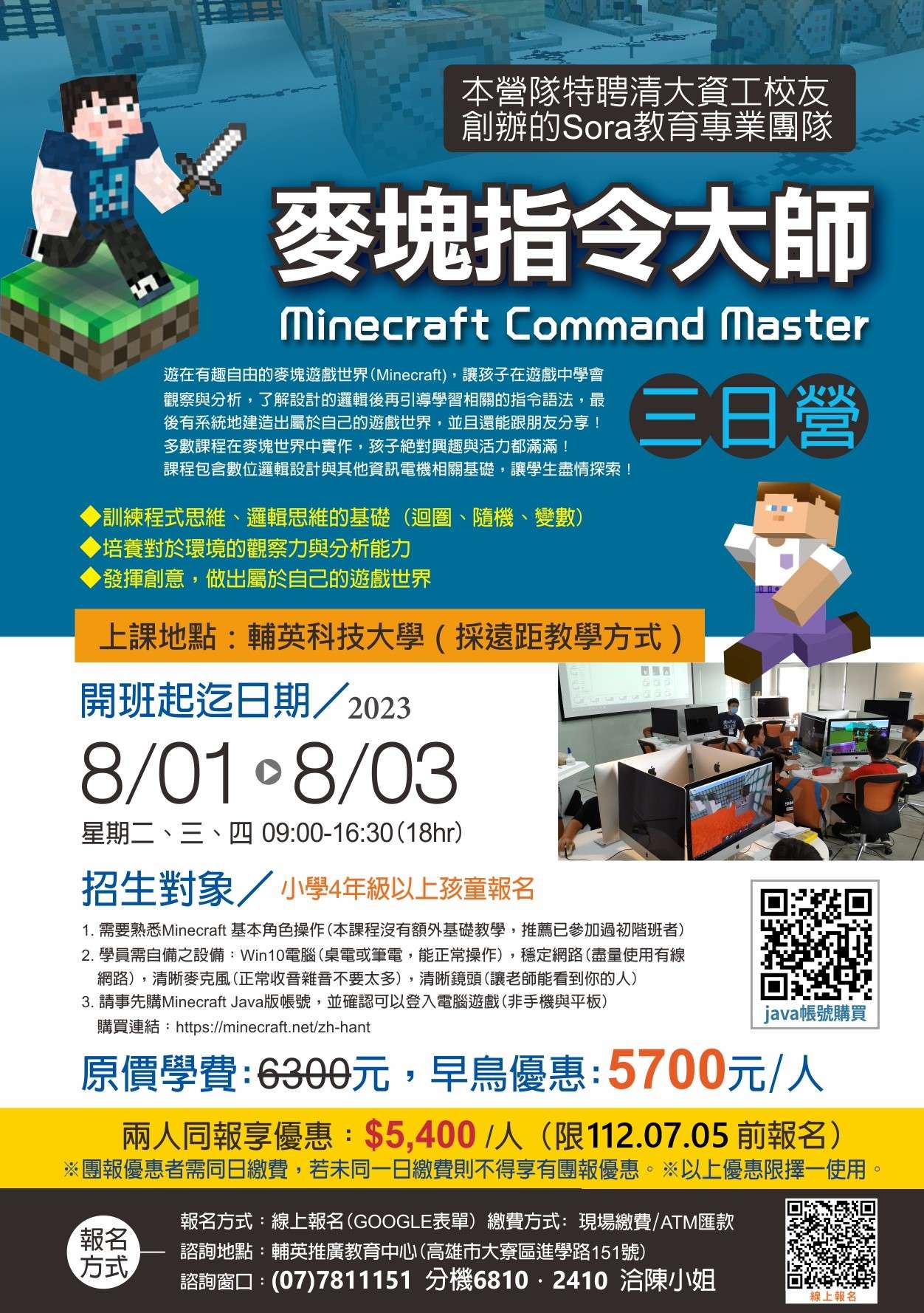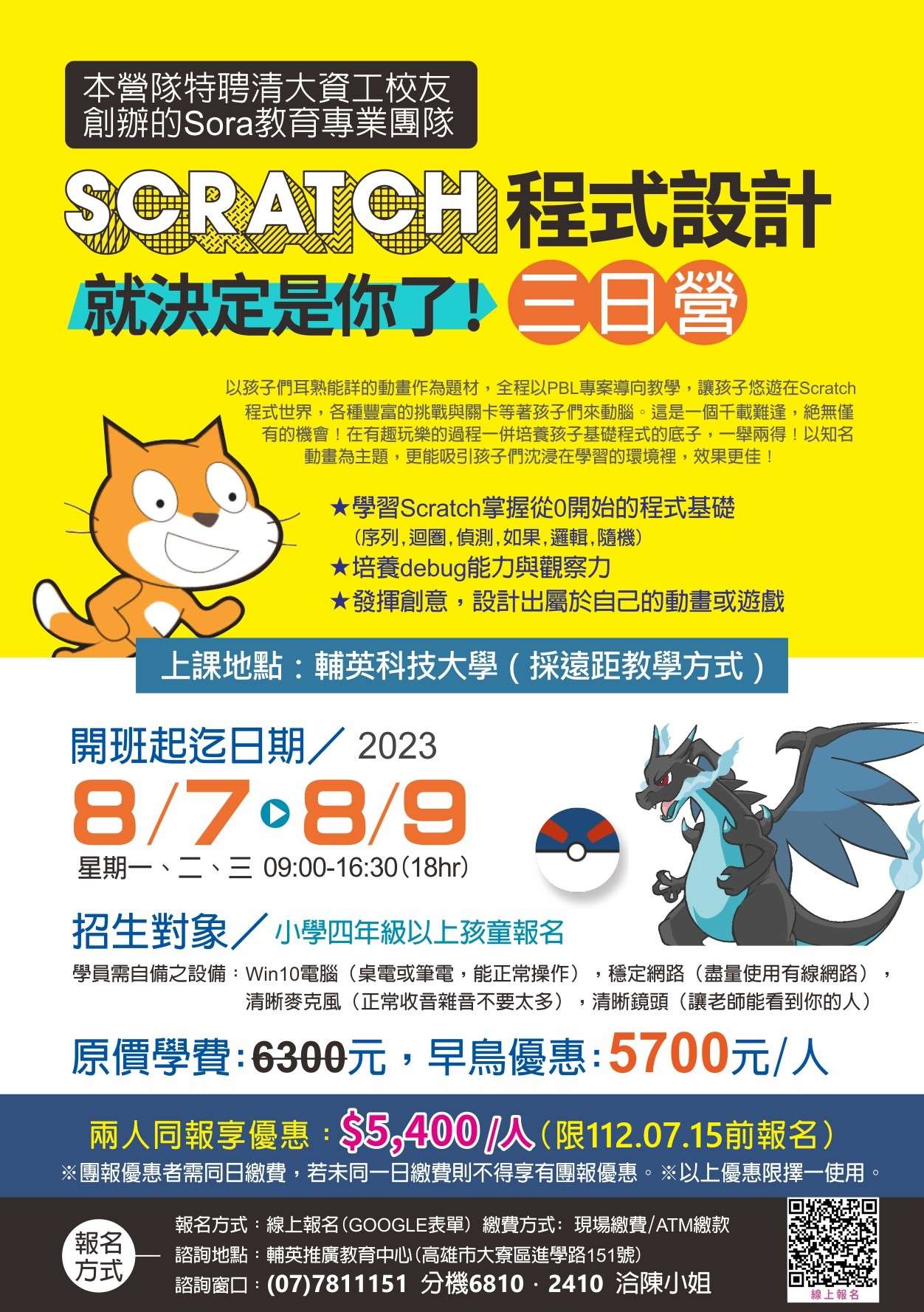 輔英科技大學推廣教育中心暑假營隊【麥塊指令大 師(三日營)】【Scratch程式 設計—就決定是你了! (三日營)】招生