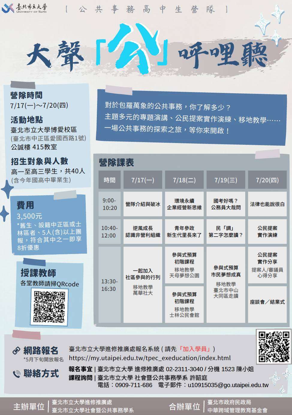 「大聲『公』呼哩聽」公共事務高中生暑期營隊
