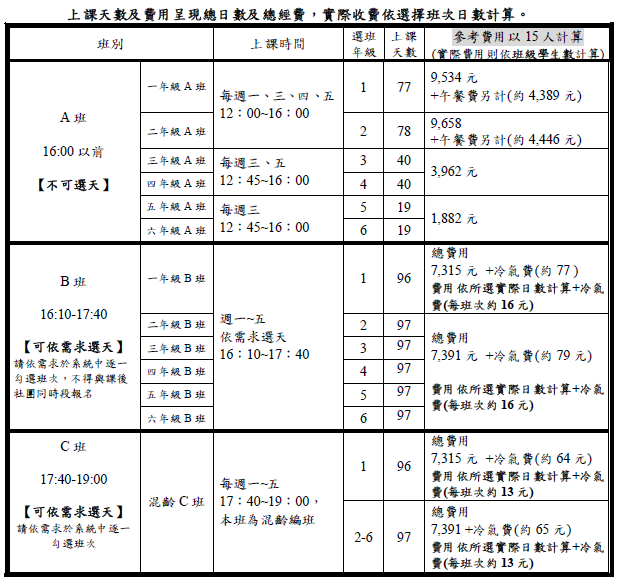 二、未於期限內完成報名但有課後服務需求者,請電洽 2932-9439 分機752 張組長。