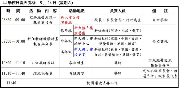 一、學校日資料連結 (請點選) 二、113-1學校日辦理意見回饋表 (參與9/14學校日後點選填答)