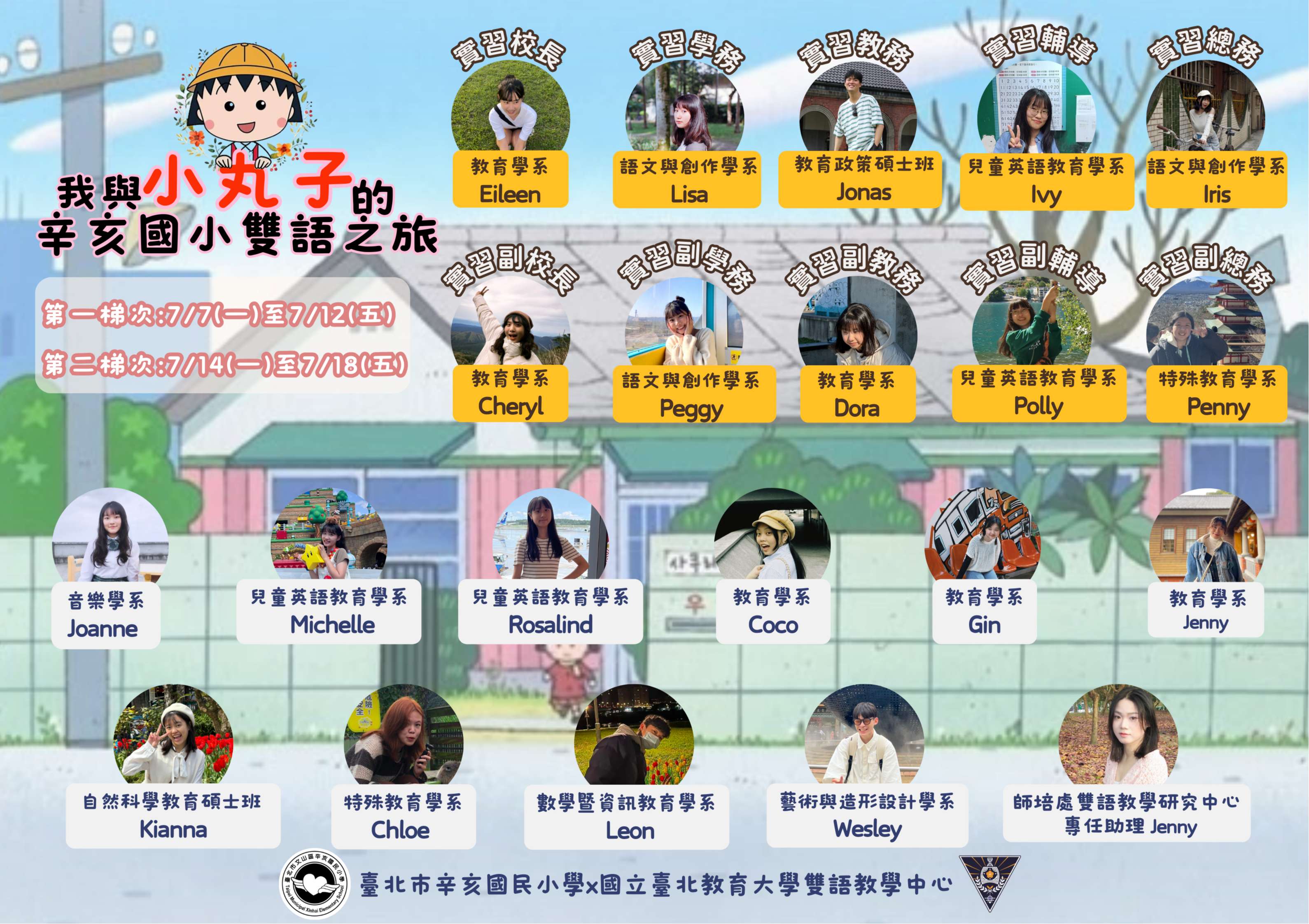 主旨:本校辦理「2025小丸子の辛亥雙語之旅」夏令營活動簡 章,請鼓勵貴校學生報名參加,請查照。 說明: 一、本校與國立臺北教育大雙語教學中心合作辦理暑期夏令 營。 二、營隊日期:第一梯 114.07.07(一)至114.07.11(五),第二 梯 114.07.14(二)至114.07.18 (五)。每梯皆為5個全 天。 三、營隊對象:第一梯限本校113學年度三至五年級學生, 第 二梯 本校及臺北市公立國民小學三至五年級學生。 四、營隊人數及班別:每梯共35名,A班(三、四年級)20人,B 班(五年級)15人。 五、報名日期:114.05.28(三)上午8:00至114.05.30(五)下午 4:00。 六、報名方式及課程:請見附件「營隊簡章」。