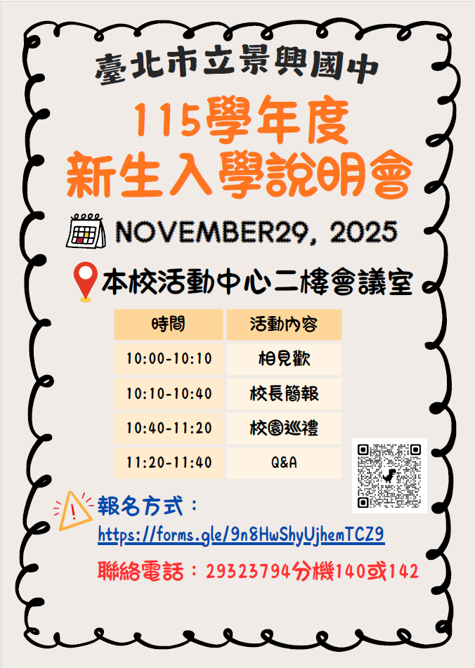二、活動地點:臺北市立景興國民中學活動中心2樓會議室。